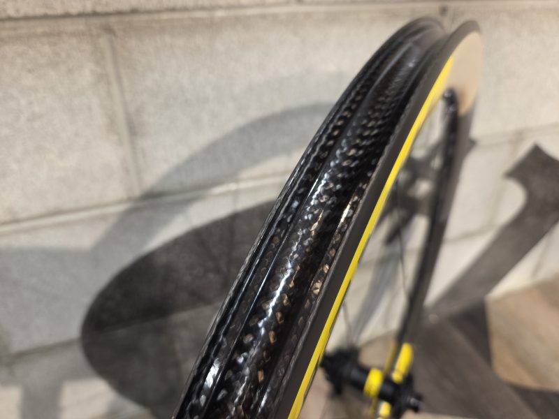 | ベースモデルの高性能 | ベースはMAVICのフラッグシップ「COSMIC SLR 45 DISC」。45mmハイトのUD²カーボンリムは、軽さ・空力・剛性のバランスに優れ、オールラウンドに活躍します。 | 見た目だけでなく、走りも最上級!ヒルクライムから平坦まで、どんなコースでも高いパフォーマンスを発揮します。 |