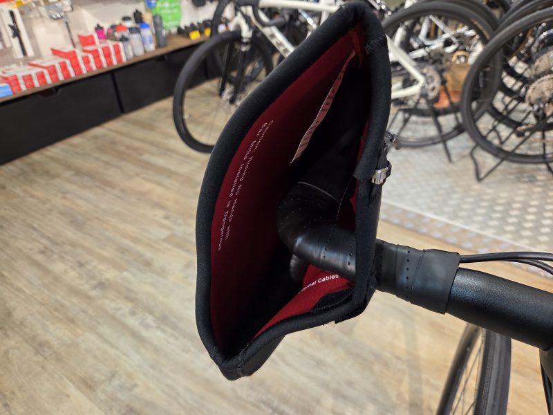 - 素材はネオプレーン!:ウェットスーツにも使われる5mm〜5.5mm厚のネオプレーン素材を採用。この素材が、冷たい風を完全にシャットアウトし、ハンドル周りの温かい空気を逃しません。