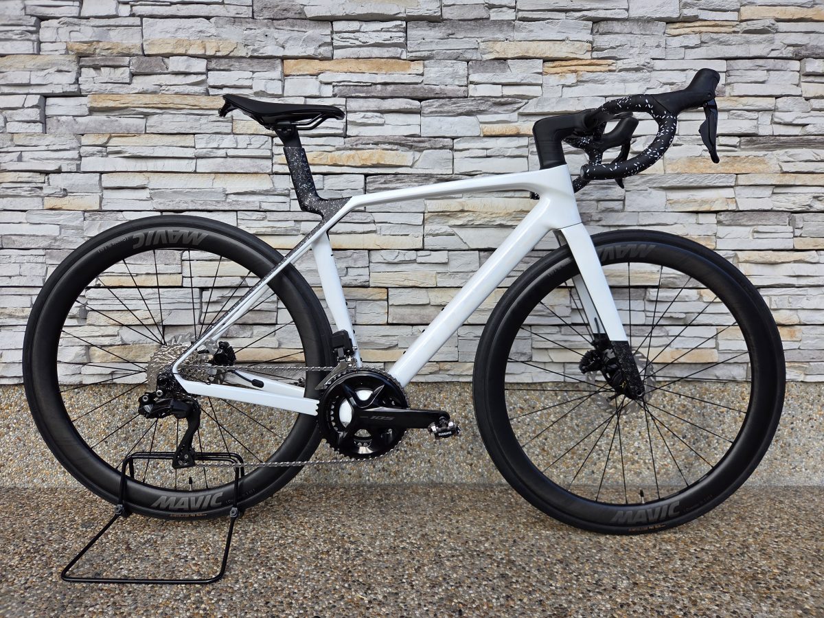 - ホイール:『MAVIC COSMIC SL 45 DISC 』高い空力性能と軽量性を両立。平坦の巡航からヒルクライムまでこなす万能な一台へ。