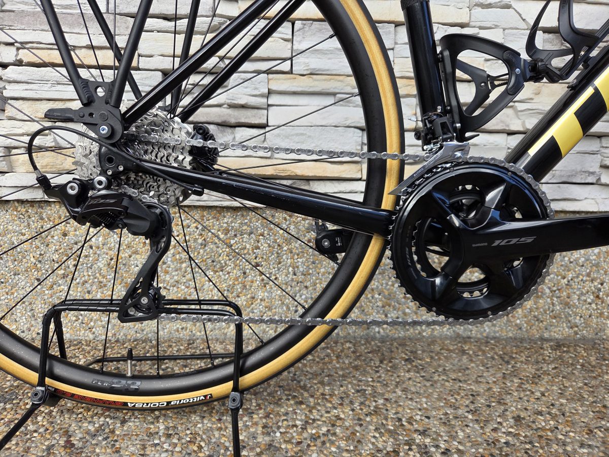 Domane AL2には、もともとはエントリーグレードのコンポーネント Shimano Claris 8速が標準装備されておりましたが、カスタマイズの一環でShimano 105 Di2の電動シフトにアップグレードされていました。ただ、電動コンポーネントだと毎日の通勤でのバッテリー切れや盗難の恐れといった不安も多少あったそうです。