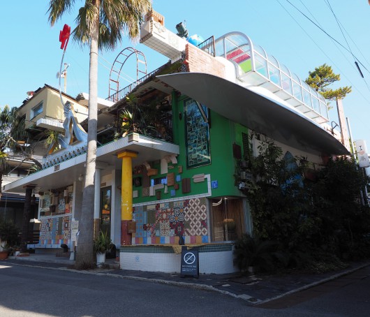到着後、まずは直島の玄関口「宮浦地区」を散策。この地区には面白い銭湯があります。それがこちらの『I ♡ 湯』です。直島銭湯は入浴もできるので、サイクリングのあと汗を流すのにおすすめです。