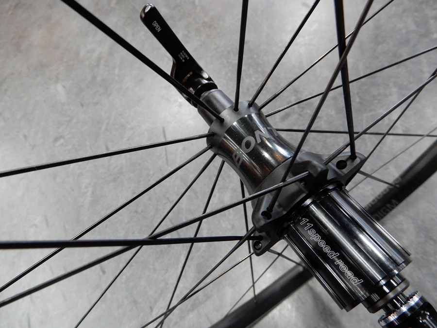 店頭展示品はリムブレーキ仕様のAeolus XXX4(アイオロスXXX4)です。47mmのリムハイトを持ちながら、ここまでご紹介したホイールの中で最軽量とハイエンドならではのスペックをたたき出しています。美味しい所を全部取りした贅沢なホイールセットをご予算が許すならばぜひともお試しください。