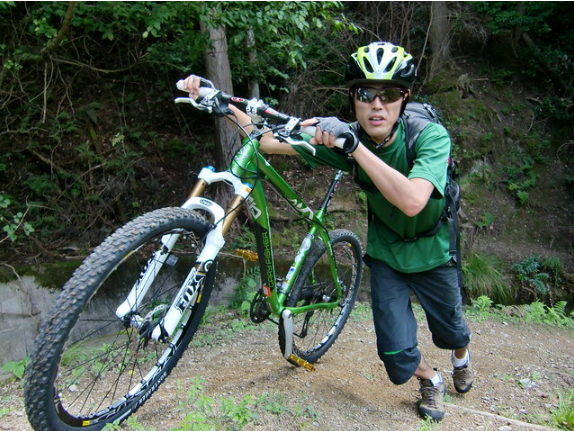 お店から自走で、山に入る前に途中の公園でスラロームごっこ!