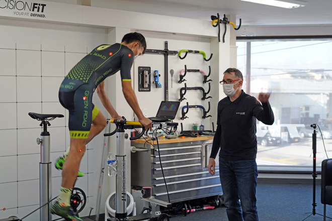 ビンちゃんの長年の経験はもちろん、モーションキャプチャやサドルの圧力測定器等の最新機器を駆使しながら最適なポジションを丁寧に探っていきます。