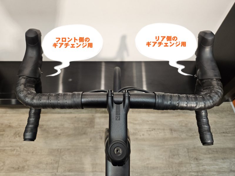 では、どのようにギアチェンジをするかと言いますと、ドロップハンドルの左右に取り付けられた変速レバーを操作します。