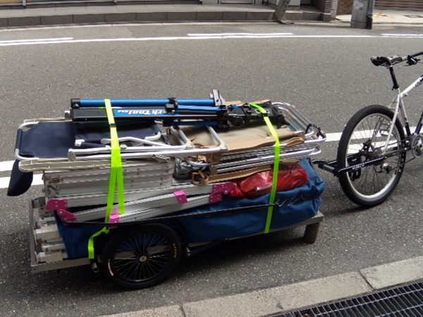 テントや工具、イス、テーブル、作業台などなど、相当な重量でしたが走りだすと余裕です。