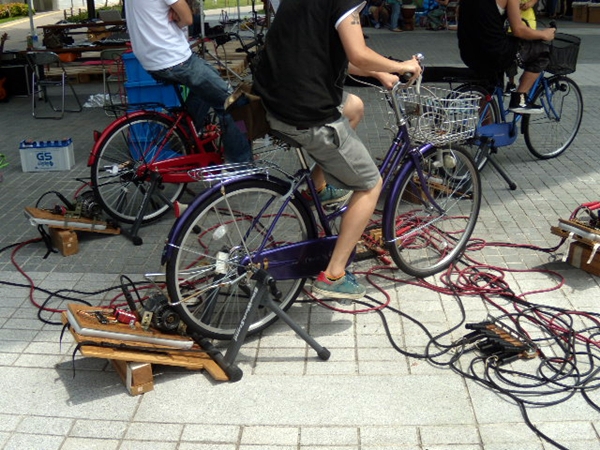 電動の発電機等はいっさいなく、自転車がたよりのこの企画。