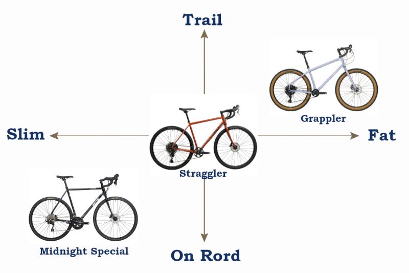 “Straggler”との違いがわかりにくいと感じるかもしれませんが、 フレームのスローピングをきつくしたり、各所の剛性をアップさせたことでトレイルに強くなったのが“Straggler”のポイントです。